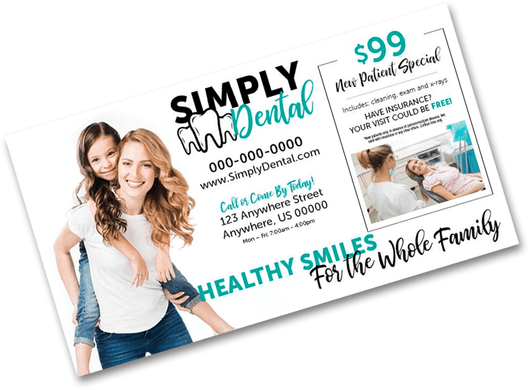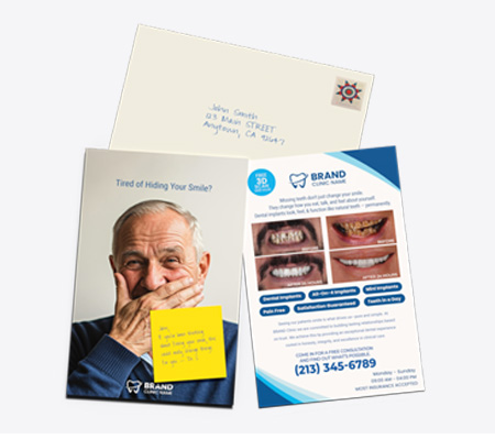 Postcards like these work well for pizza coupons or oil change specials… but not for something as personal as choosing a dentist or improving a smile.