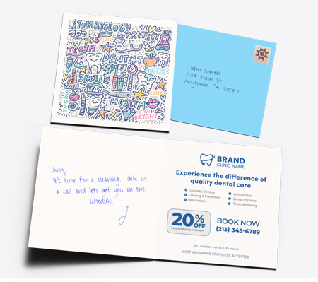 From the envelope to the card and note, we've reimagined dental marketing that gets open and read.